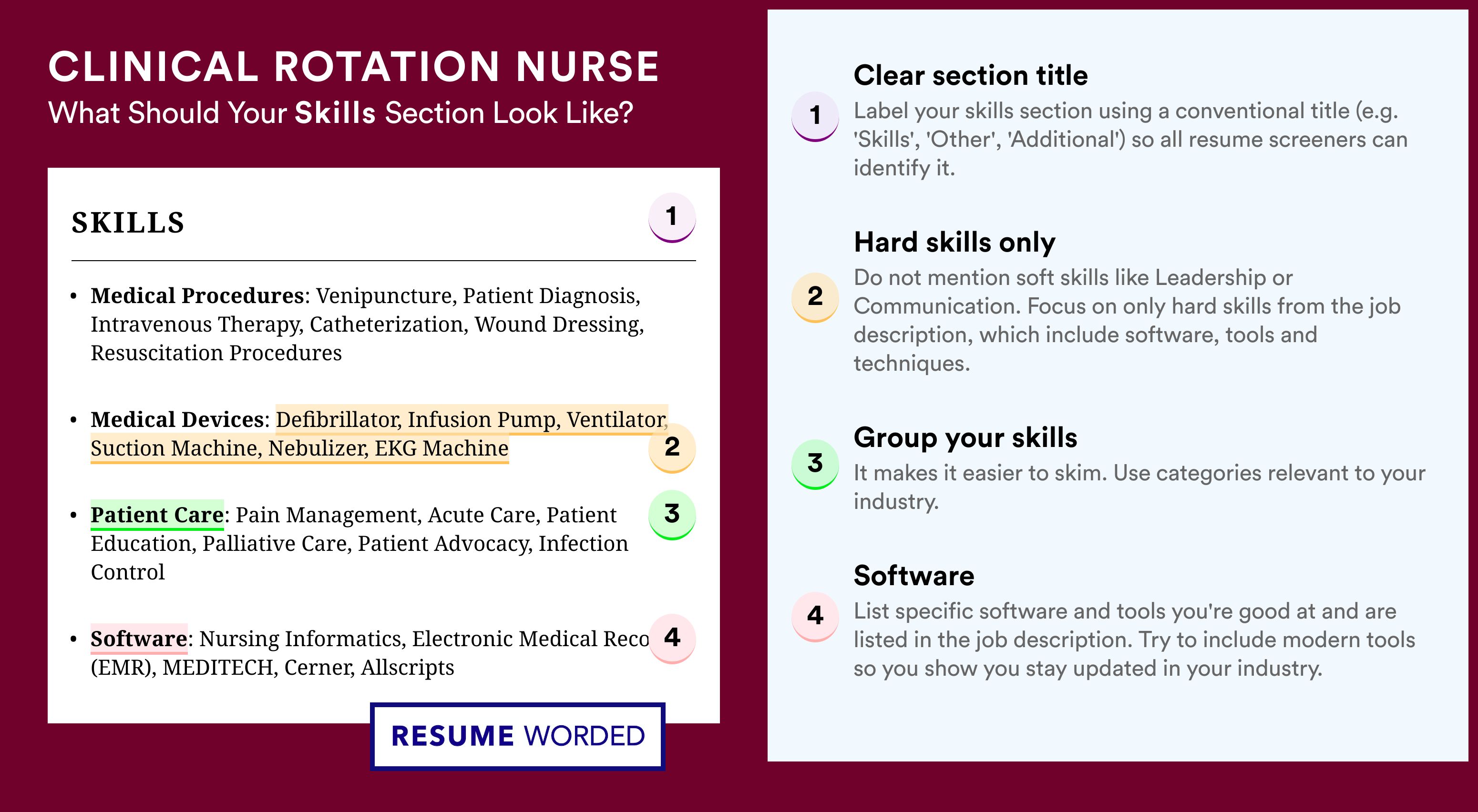 On your resume, explicitly list the clinical rotations you've completed and the related skills gained. Remember, this position's essence is to gain diverse experiences. Mention the departments you've worked in and the unique practices you learned there.