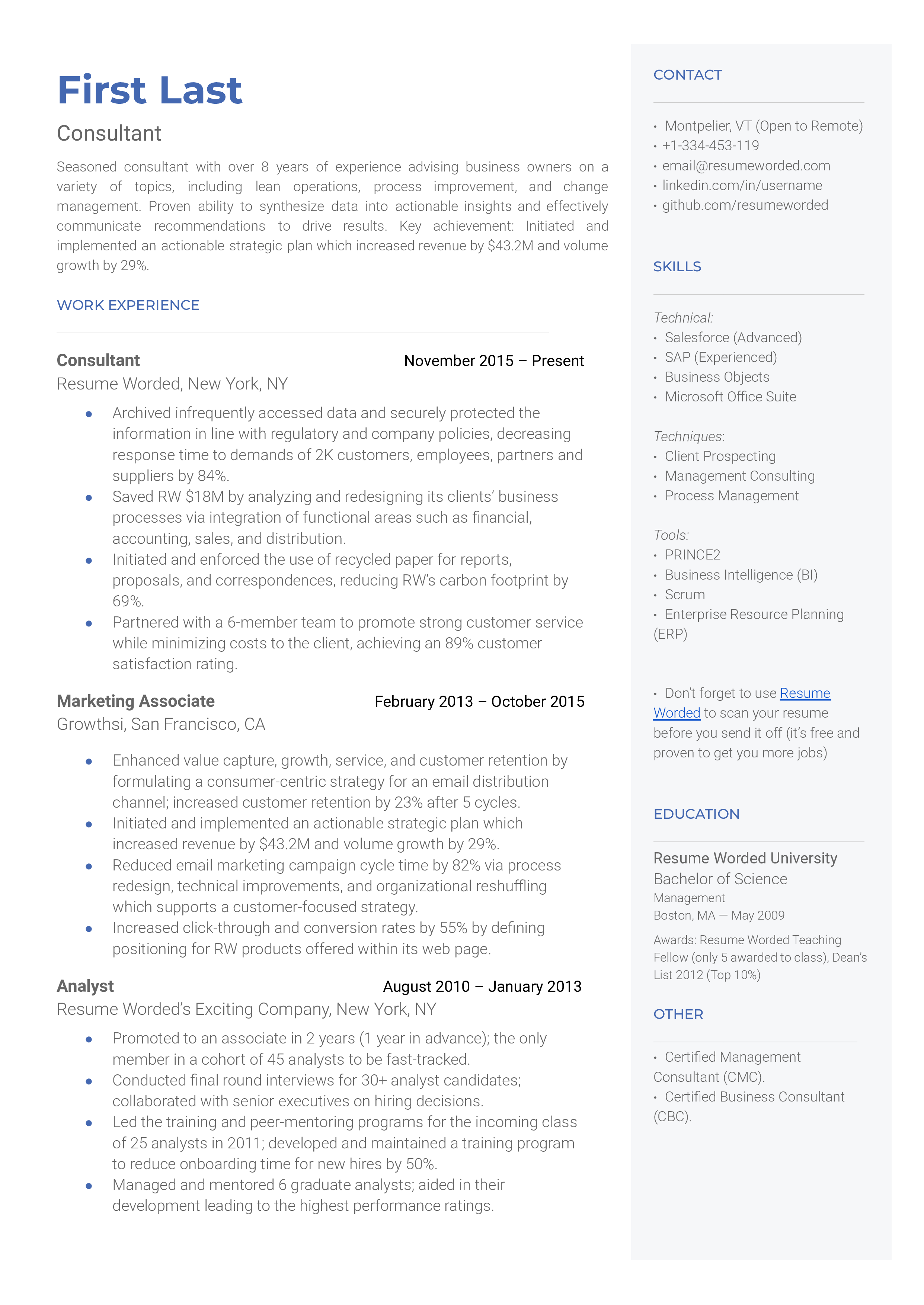 Make sure you list any industry-specific certifications you've obtained. This is especially crucial for consultants, as it demonstrates keeping up-to-date with industry advancements and commitment to professional development. For example, if you're an IT consultant, a Certified Information Systems Security Professional (CISSP) certification can give you an edge.