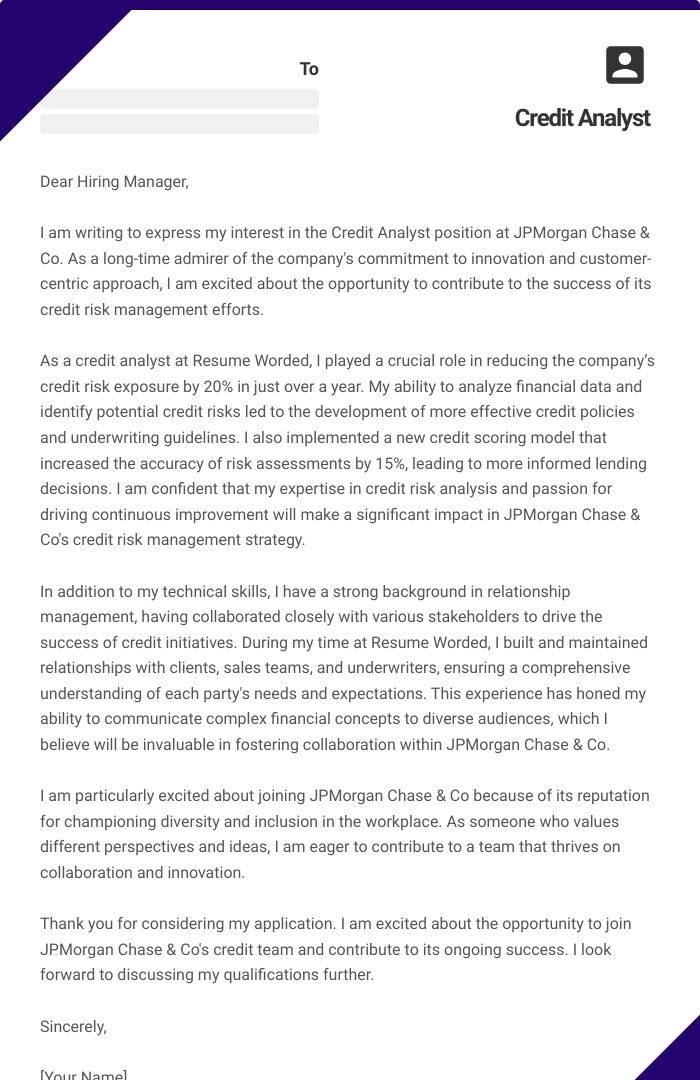 In closing, I am eager to bring my blend of analytical prowess, innovative problem-solving, and a deep-seated enthusiasm for credit analysis to the team at JPMorgan Chase.