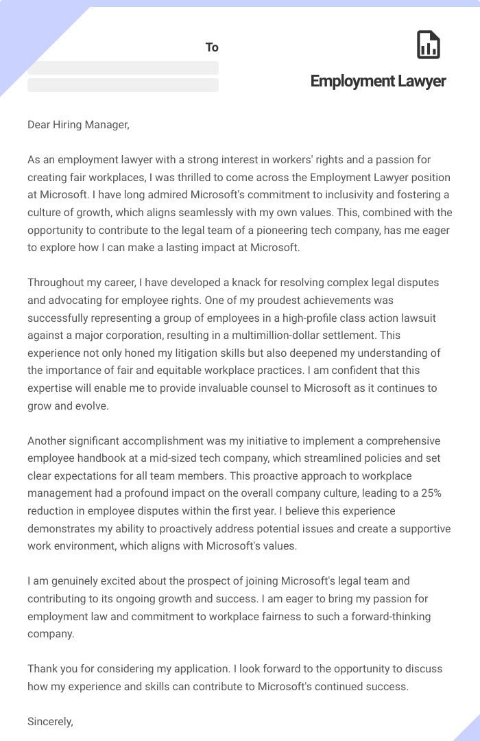 I am genuinely excited about the prospect of joining Microsoft's legal team and contributing to its ongoing growth and success. I am eager to bring my passion for employment law and commitment to workplace fairness to such a forward-thinking company.
