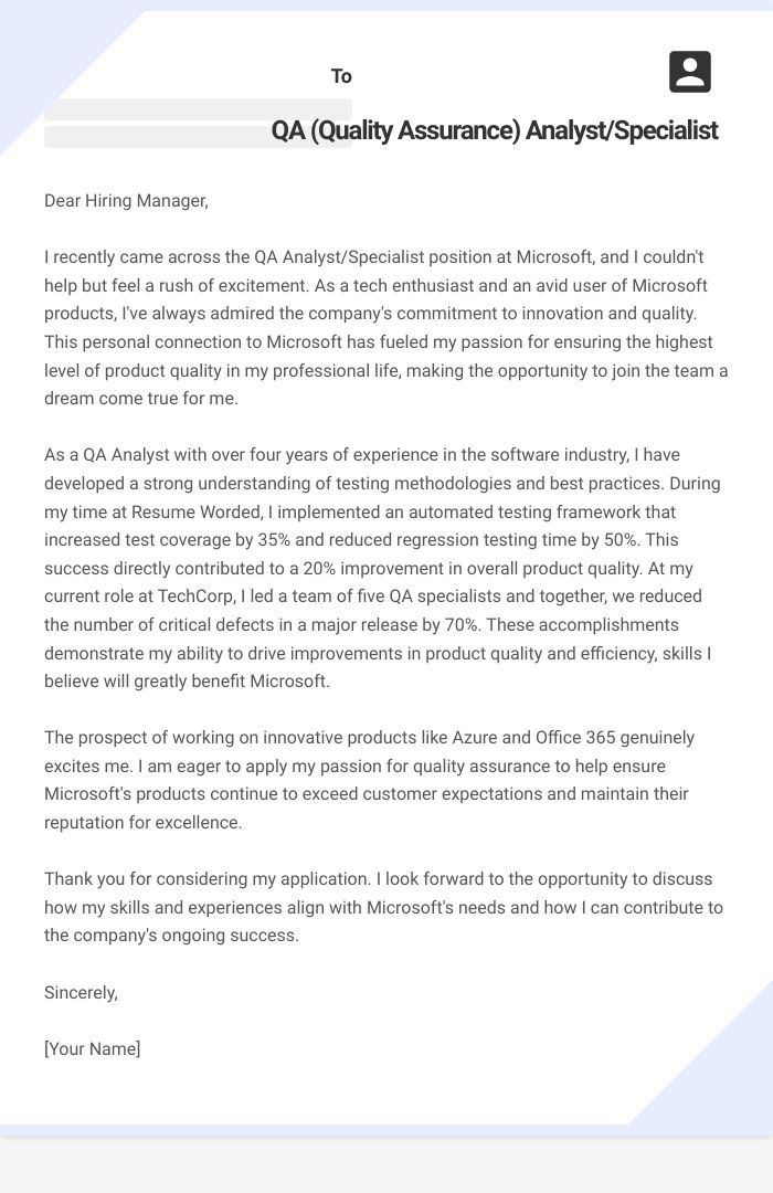 14 QA (Quality Assurance) Analyst/Specialist Cover Letters