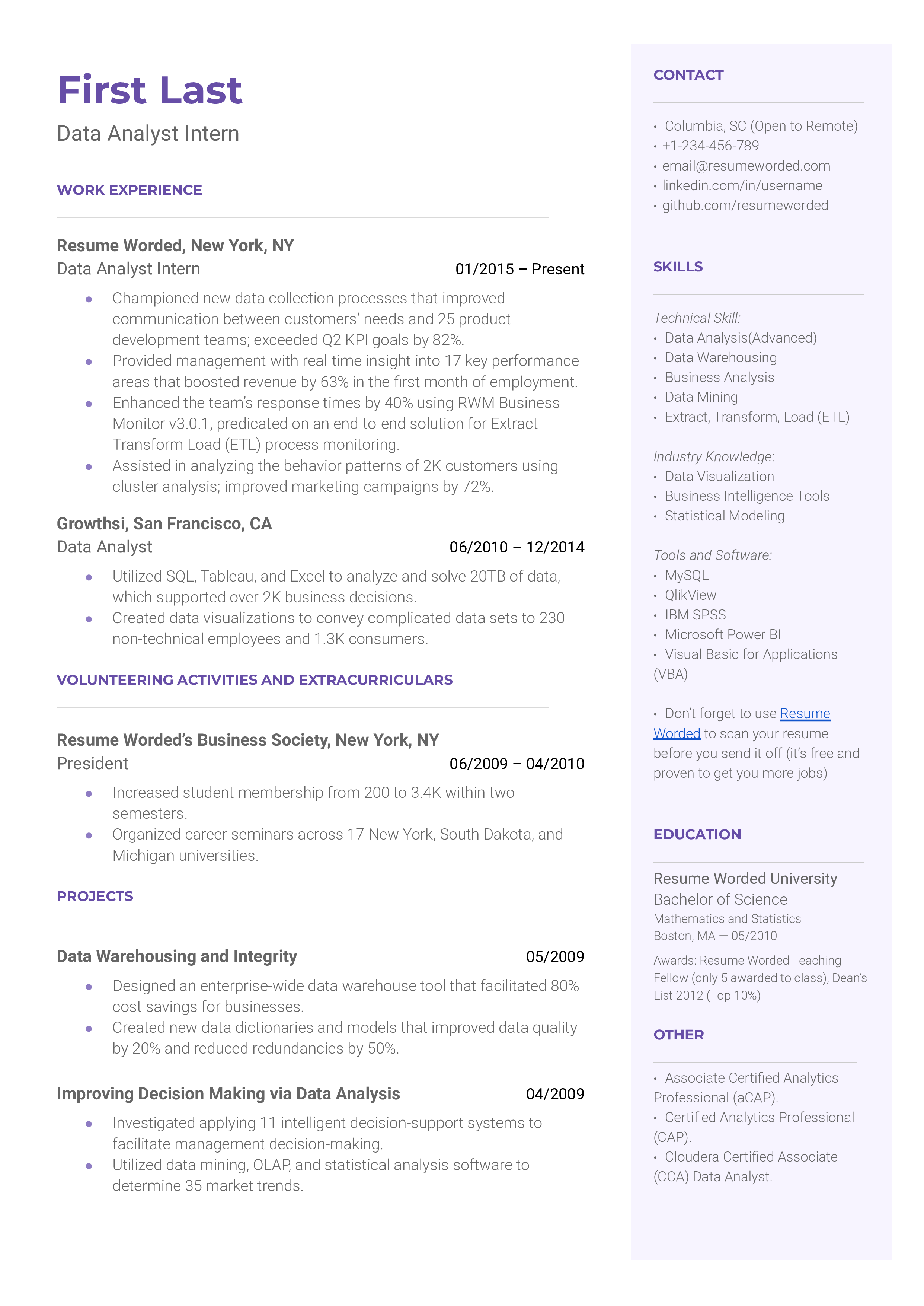 We've put together a number of free Data & Analytics resume templates that you can use. Choose a category depending on your field, or just scroll down to see all templates.