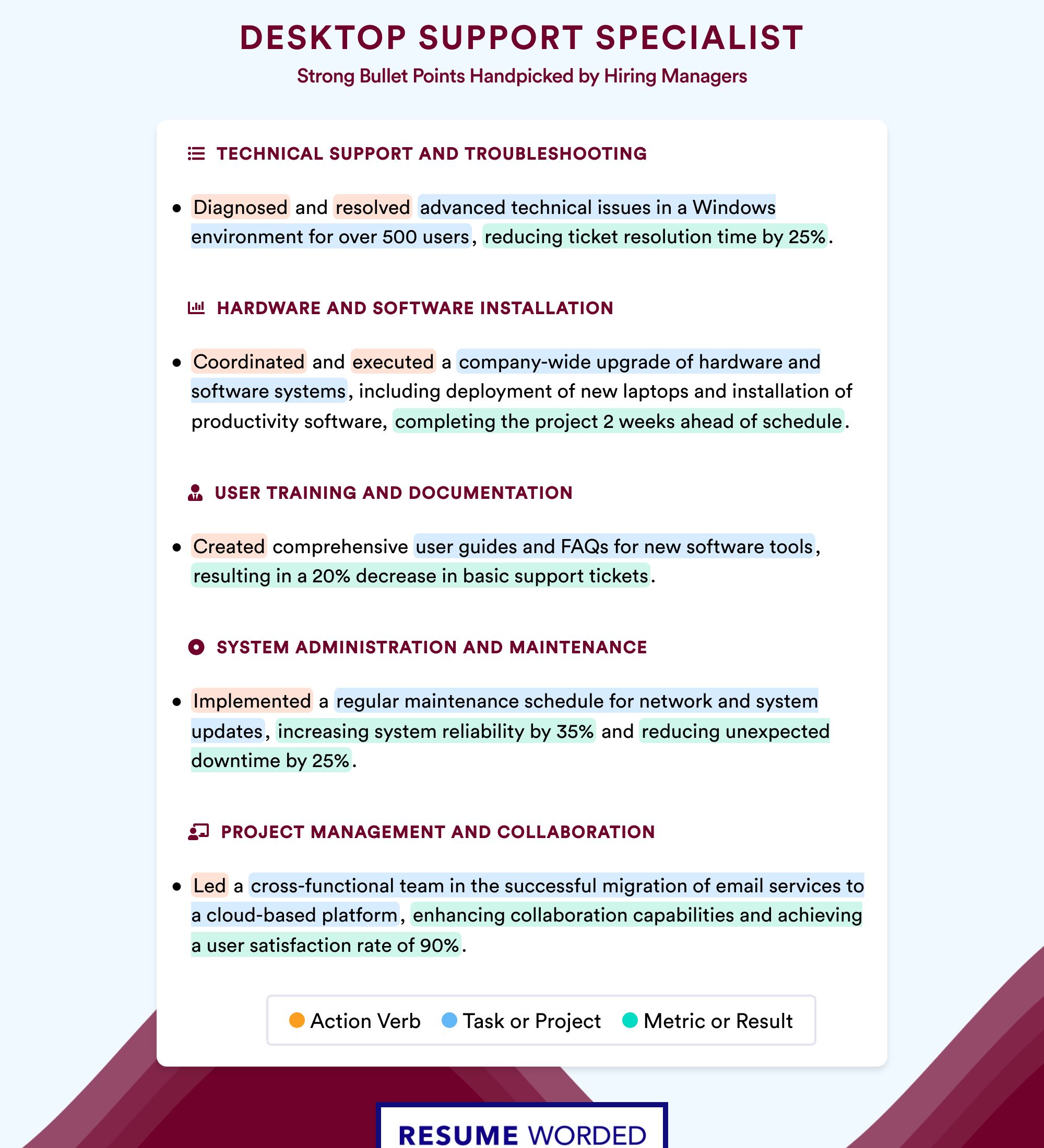 At this level, hiring managers are more interested in applicants with people, coordination and organizational skills. These are important for cooperative teamwork, mentoring, supervision, and project management. This resume showcases the applicant’s ability to train other employees, cooperate/work with different teams, and lead projects.