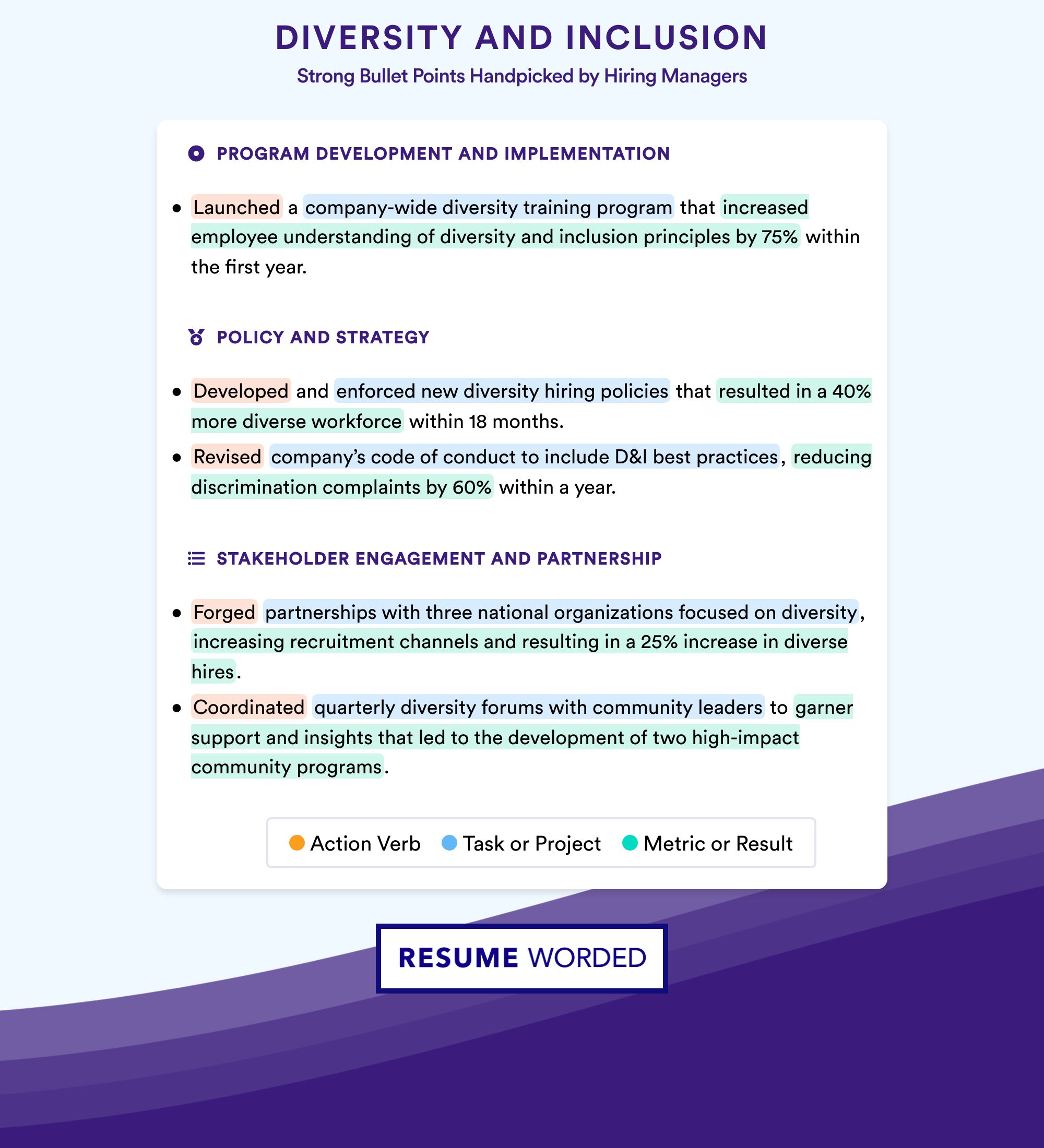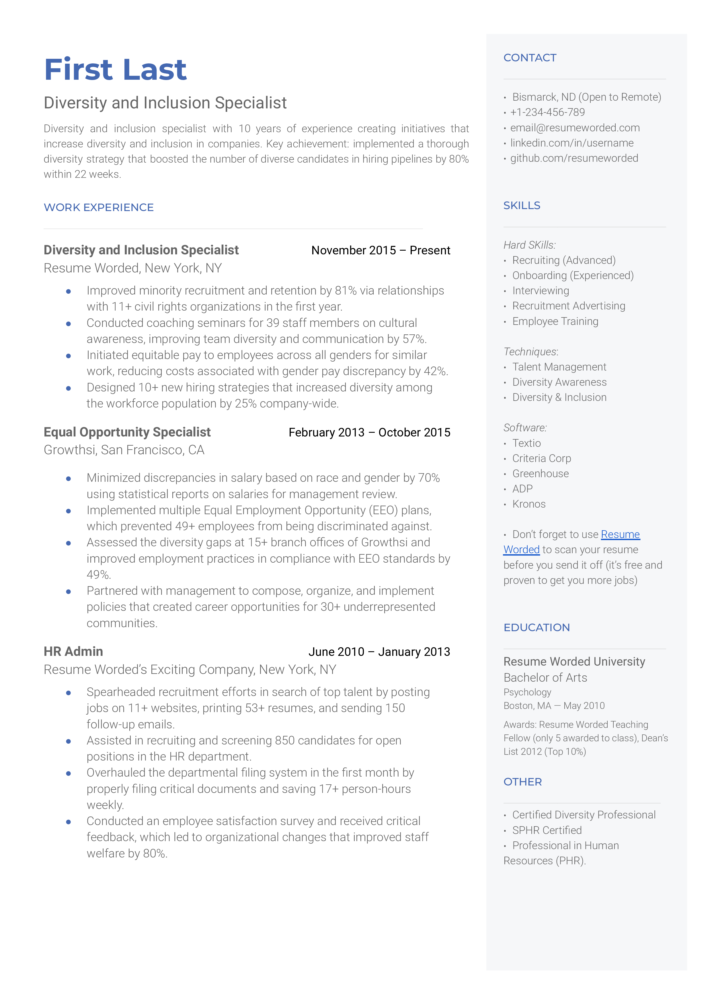 Any certification in the HR field would be beneficial to your application, but certification specifically in diversity would be particularly attractive to a recruiter. If you don’t have any certifications of this nature, consider working to get one to help you stand out.