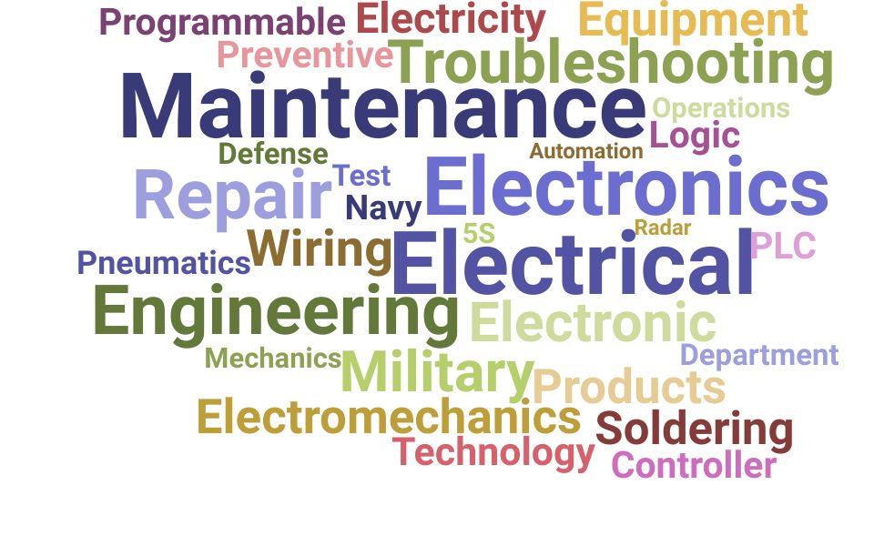 This word cloud highlights the important keywords that appear on Electronic Technician job descriptions and CVs. The bigger the word, the more frequently it appears on job postings, and the more 'important' it is.
