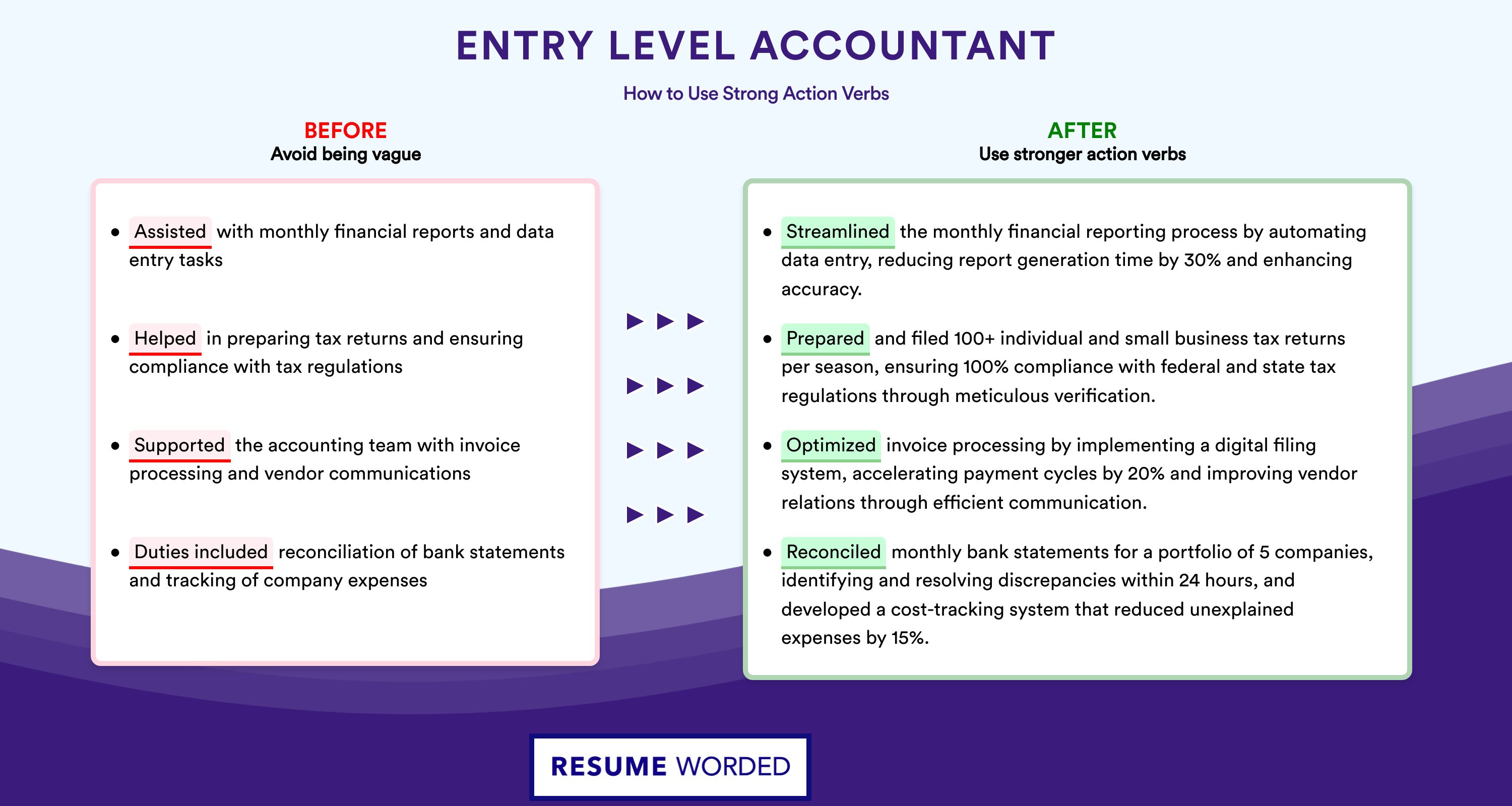 At the beginning of your accounting career, you won’t have as much work experience to list on your resume -- so place more focus on your education, especially if you completed a degree in accounting and finance. A high GPA and any academic distinctions you’ve earned can show potential employers proof of your work ethic and dedication.