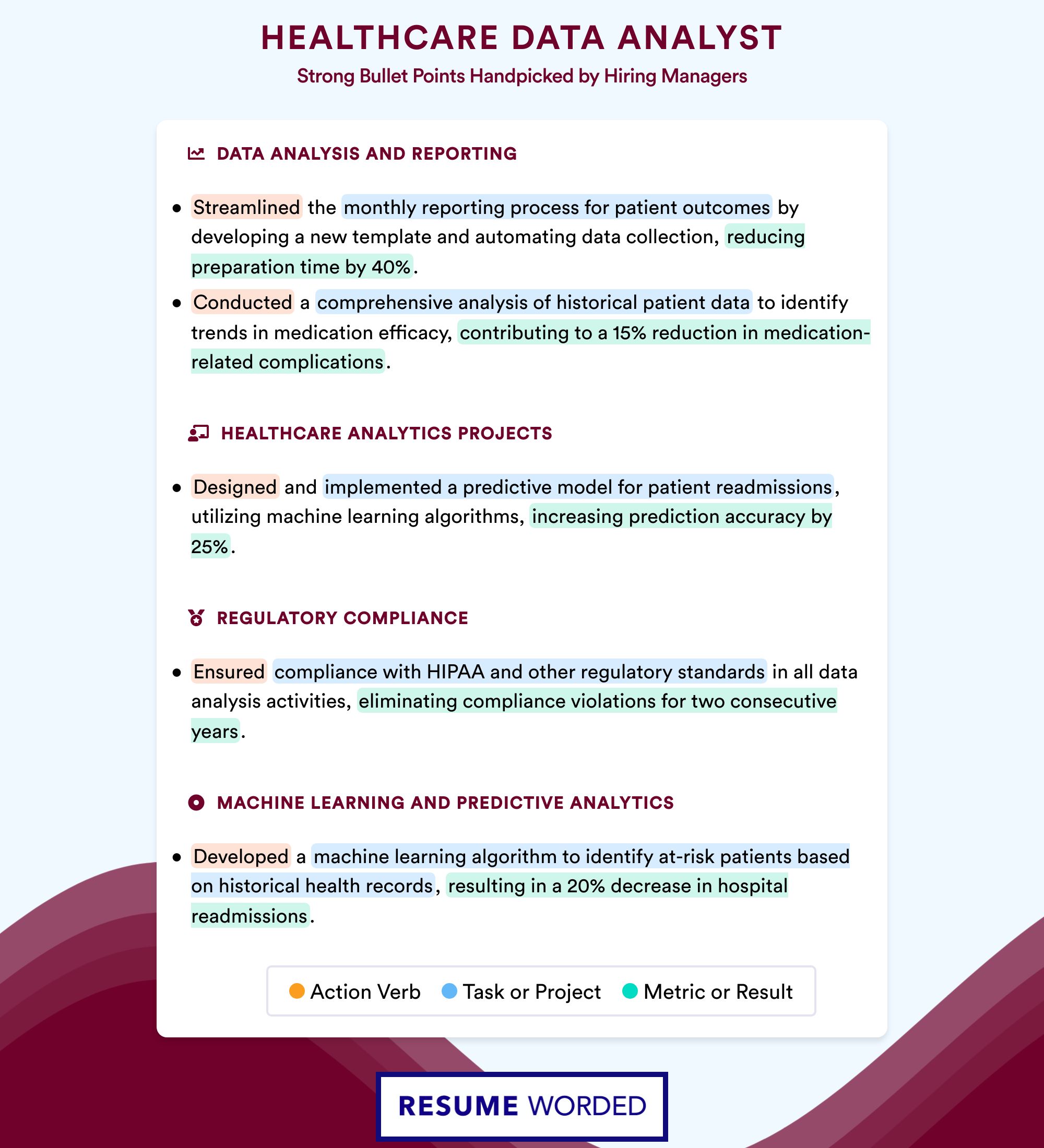 Industry knowledge is particularly important for this position. So be sure to list what sector of healthcare you are particularly knowledgeable about. This applicant has listed health insurance and HIPAA as some of their areas of expertise.