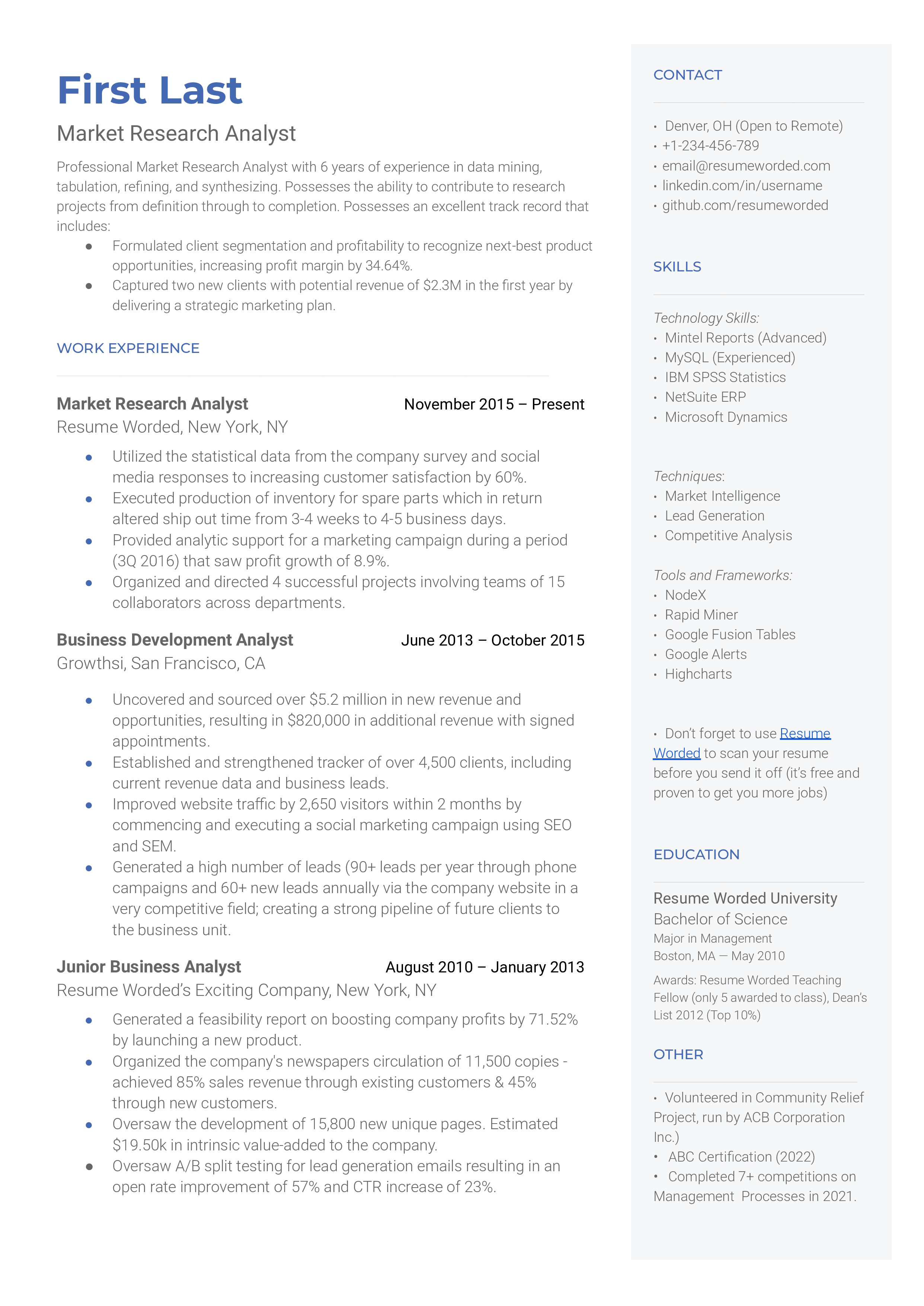 As a Market Research Analyst, your CV should show that you're proficient with research tools and software. You should specifically mention the ones you have used, like SAS, SPSS or Tableau, and how you have applied them in your work.