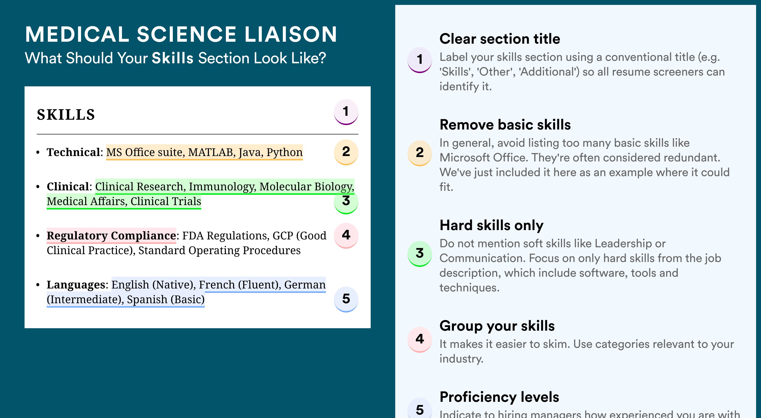 Your resume should detail your deep understanding of the therapeutic area you'll be working in. While your degree(s) will show your academic qualifications, use your experience section to highlight specific projects or initiatives where you've applied this knowledge.