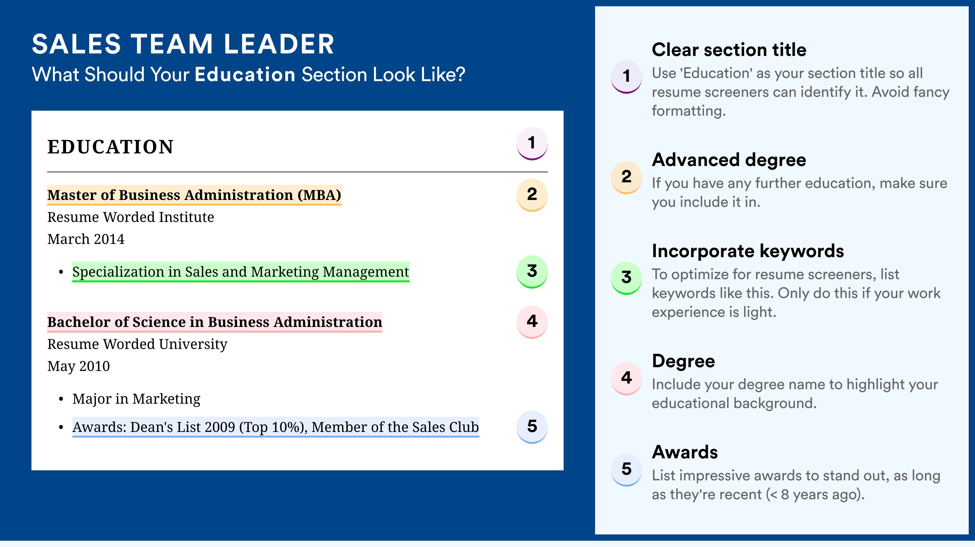 The sales leader defines the culture and vision of the sales strategies, but this isn’t their only duty. They must ensure that team members feel motivated to do their jobs. This is why sales leaders focus on individuals and how to strengthen their competencies. Your resume should demonstrate you have excellent leadership skills.