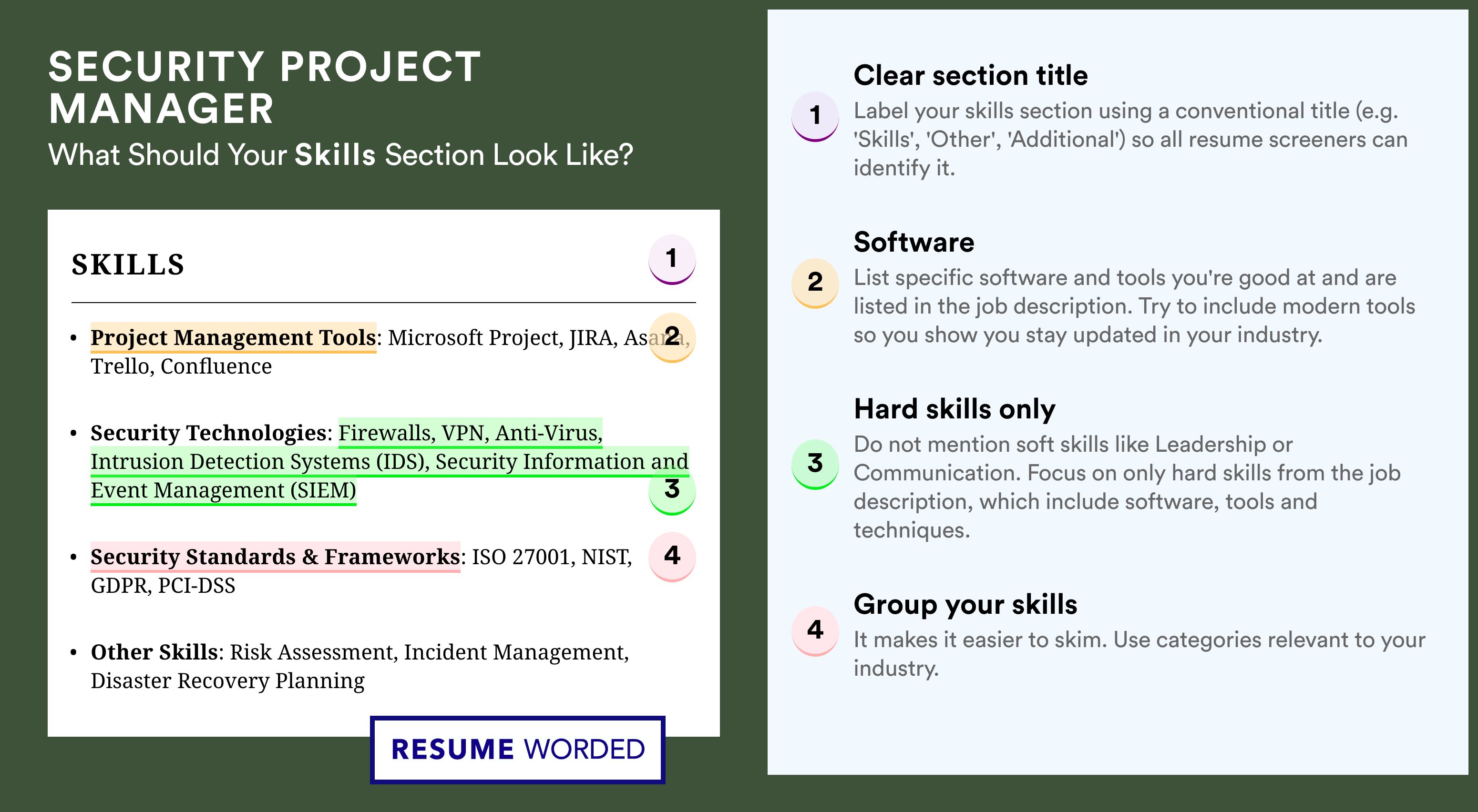 Hiring managers want to know that you’ve got a sportsperson spirit, enjoy teamwork, and can lead your cybersecurity colleagues to deliver projects. In your work experience section, make use of limited lines by showing you have what it takes to manage projects along with proven success rates.
