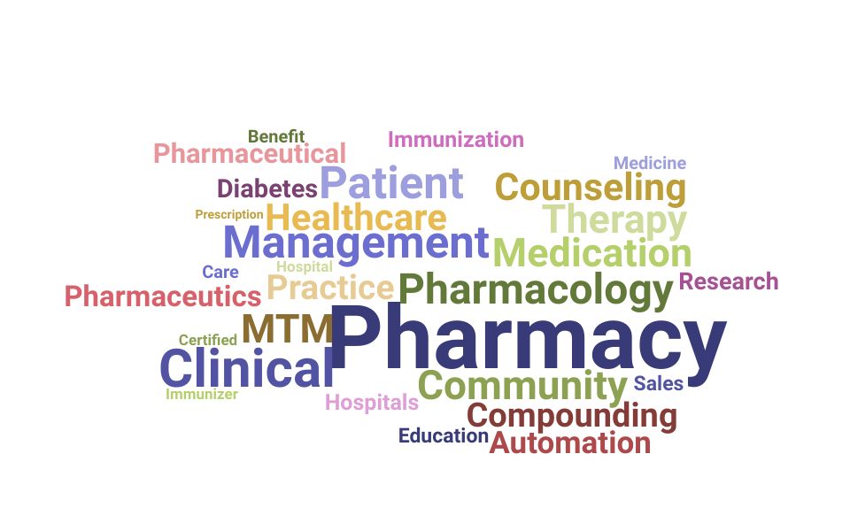 The following word cloud highlights the most popular keywords that appear on Pharmacist job descriptions. The bigger the word, the more frequently it shows up on employer's job postings. If you have experience with these keywords, include them on your resume.