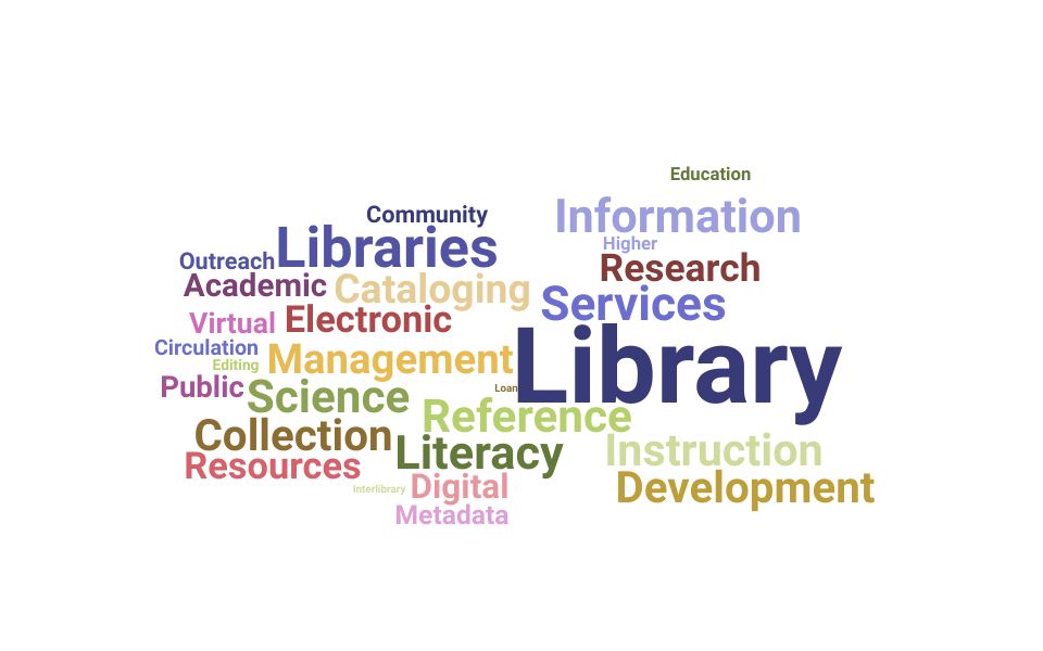 The following word cloud highlights the most popular keywords that appear on Librarian job descriptions. The bigger the word, the more frequently it shows up on employer's job postings. If you have experience with these keywords, include them on your resume.