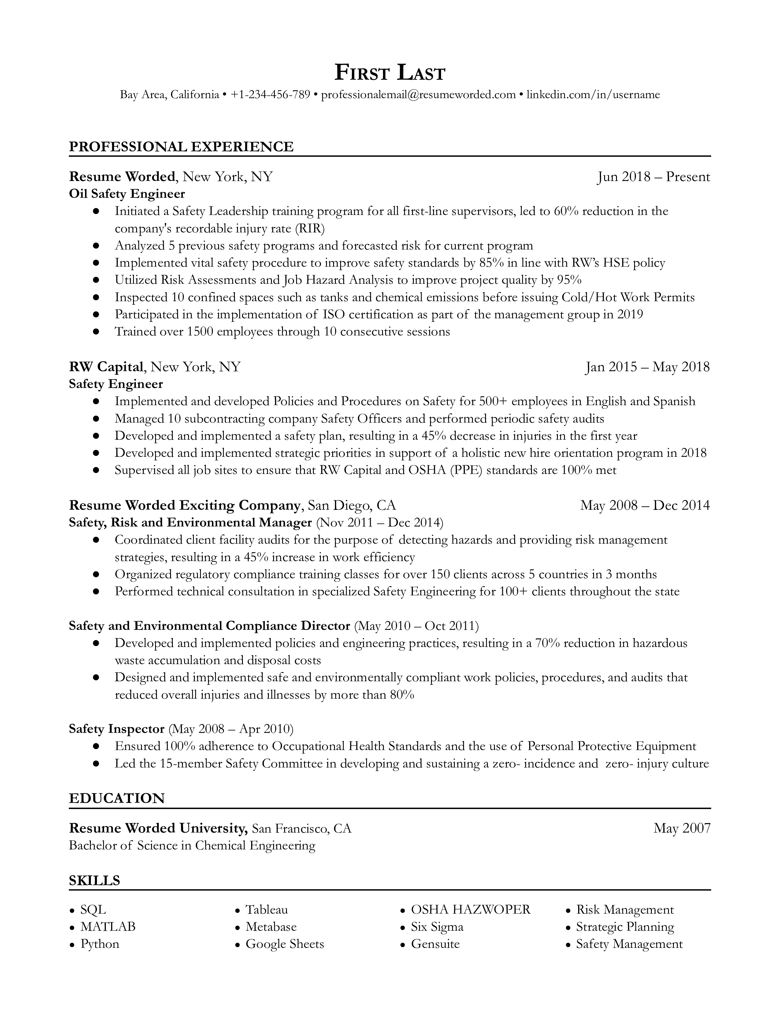 Leadership skills are crucial in a safety engineer role. You must guide the entire team on the worksite to prevent hazards, and people must listen to you. If you want to stand out in your job hunt, try to emphasize your leadership skills in your resume.
