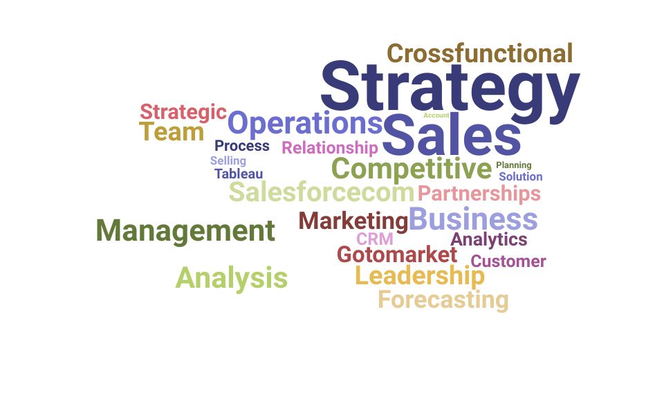 On top Sales Strategy Manager resumes, skills like Sales Strategy, Sales Operations, Strategy, Competitive Analysis, Business Strategy, Salesforce.com, Cross-functional Team Leadership and Forecasting appear most often.
