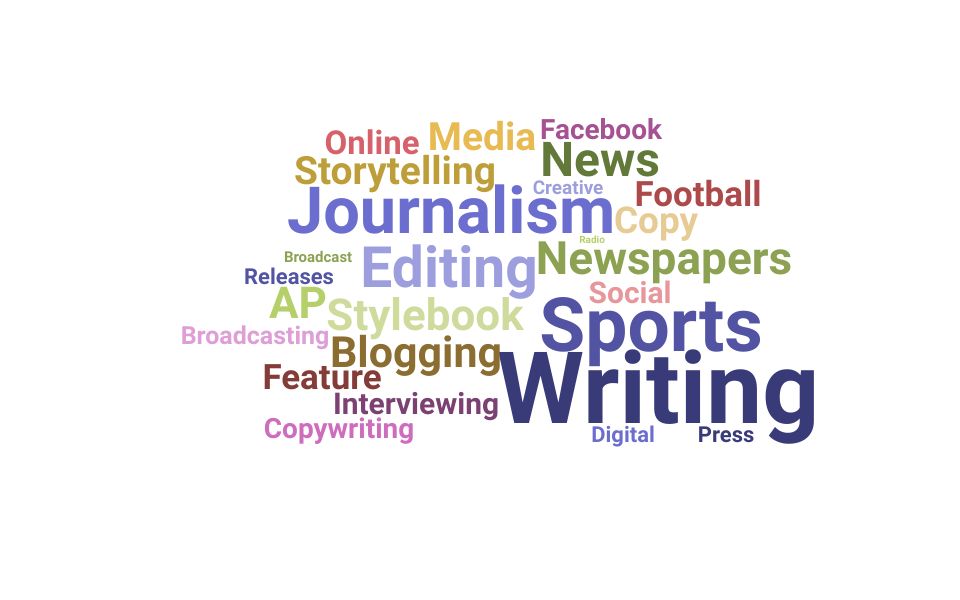 The following word cloud highlights the most popular keywords that appear on Sports Writer job descriptions. The bigger the word, the more frequently it shows up on employer's job postings. If you have experience with these keywords, include them on your resume.