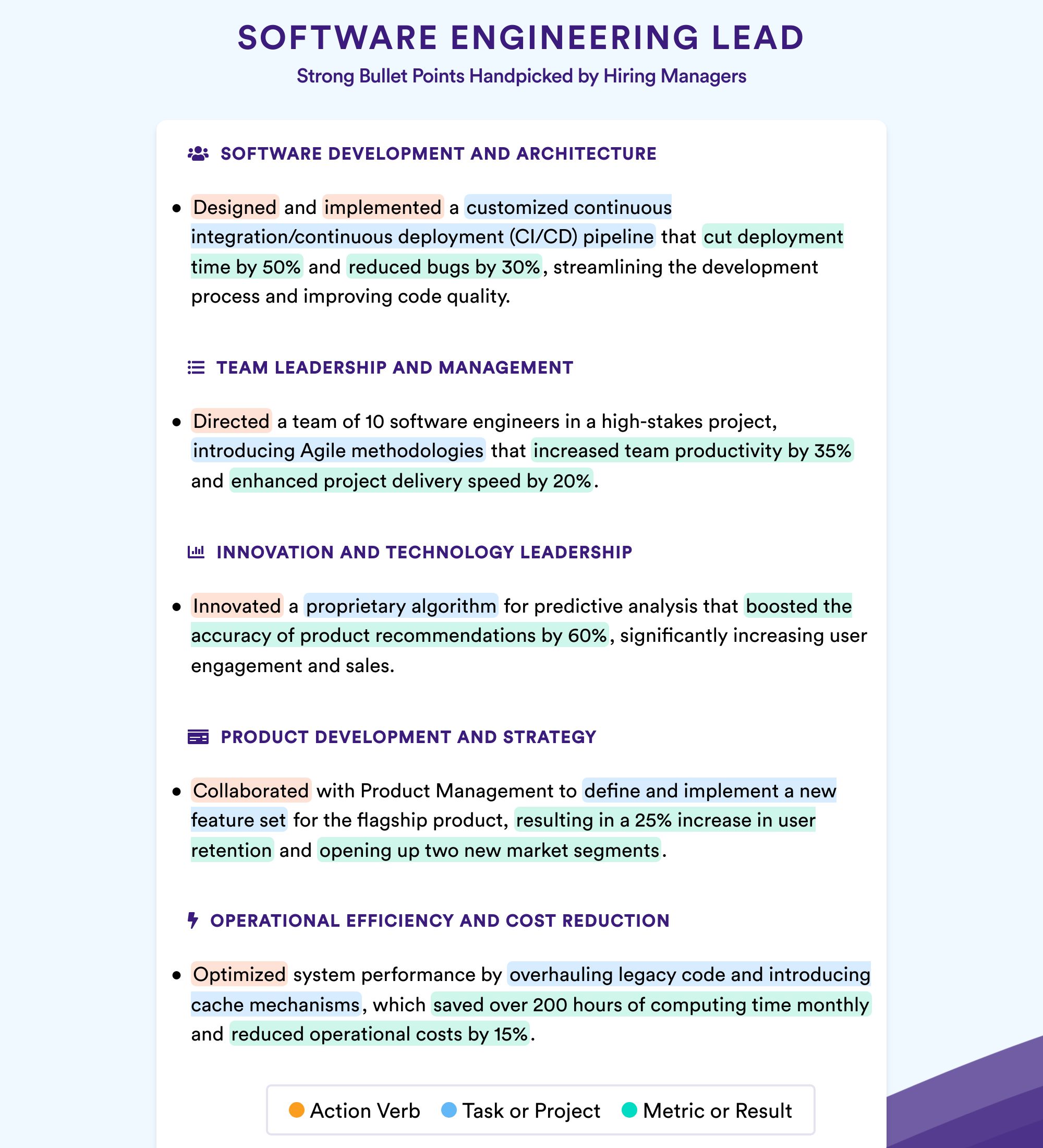The first rule about including a resume summary is that it does not repeat accomplishments mentioned elsewhere on the resume. This resume stresses new software engineering and leadership skills right at the top of the resume, and includes an award too. If you include a summary, try to include a mix of both technical accomplishments (e.g. projects you developed or led), as well as career-related accomplishments (e.g. being promoted).