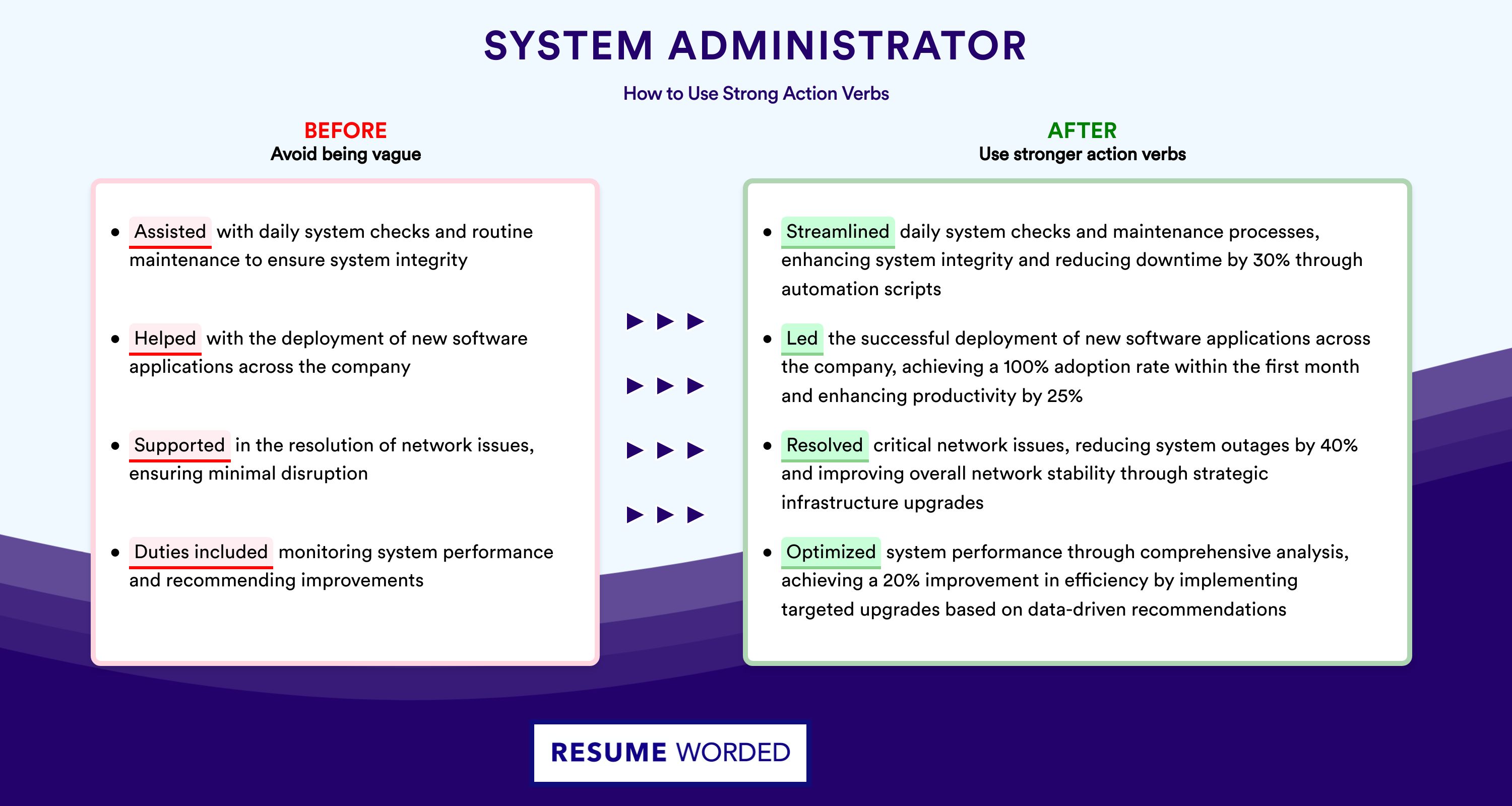 Problem solving skills are among the most important for a system administrator. Organizations lean on system administrators to solve computer issues for employees. Be sure to demonstrate on your resume how you have solved problems in previous roles.