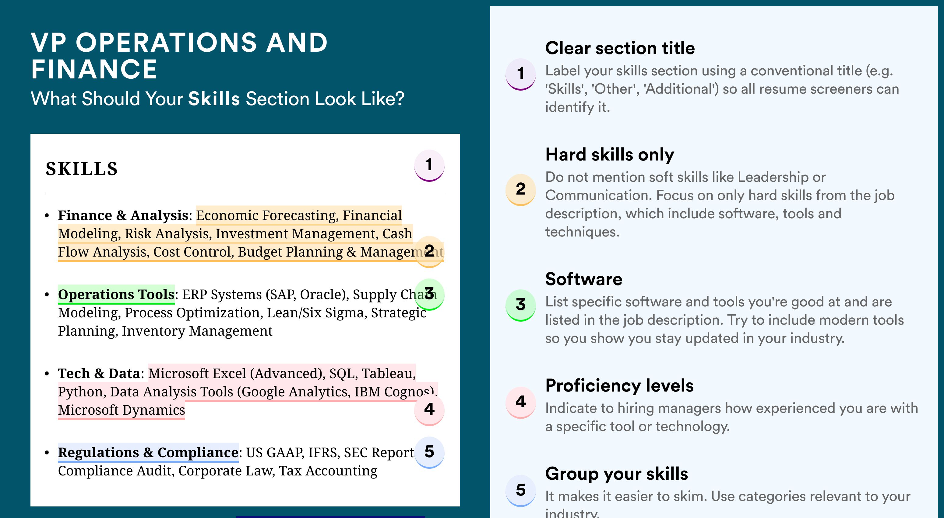 In this position, your main goal is to maximize efficiency and revenue, and minimize costs. Use metrics to show how successful you have been at achieving those goals. Metrics make your resume more easily digestible and can give you an edge over your competition. Take a look at how this applicant’s metrics make their experience seem more impressive.